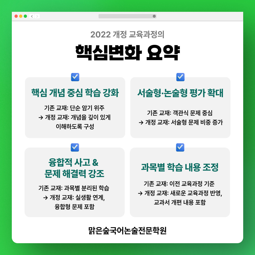 맑은숲국어학원에서도 2022 개정 교육과정을 반영하여